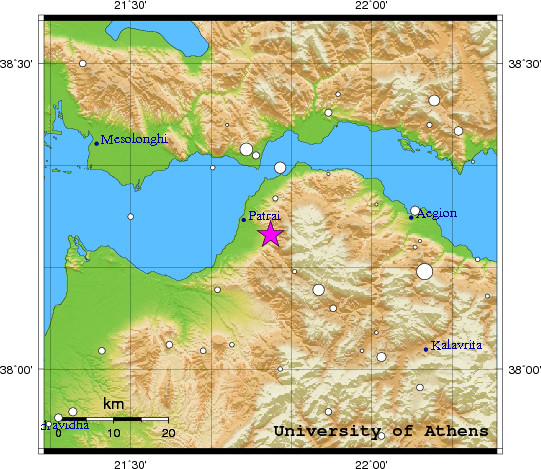ήταν εντάσεως 2,5 βαθμών της κλίμακας Ρίχτερ και με επίκεντρο 6 χλμ νοτιοανατολικά της Πάτρας.